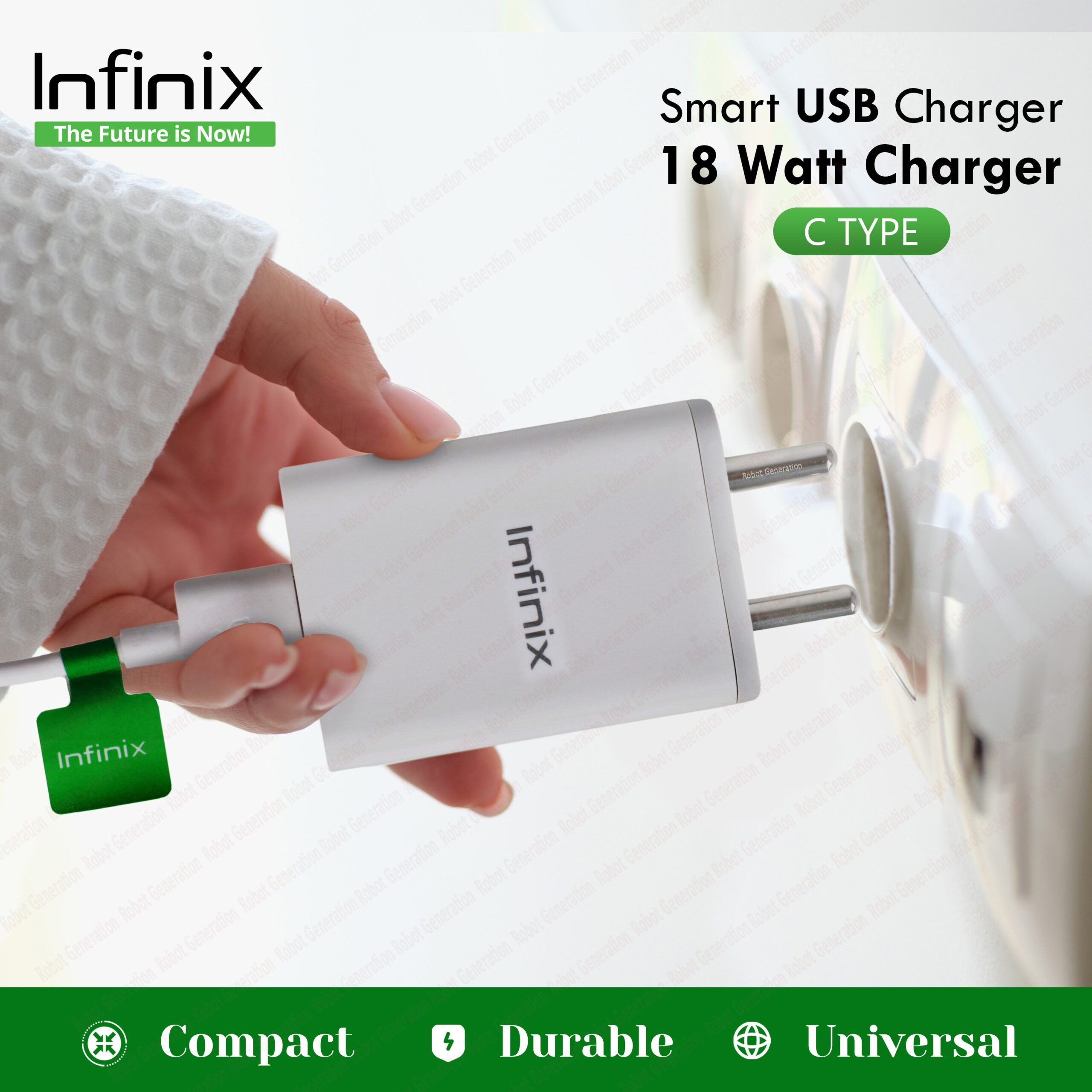 Infinix 18 W Quick Charge 2 A Wall Charger for Mobile (White, C-Type, Cable Included)